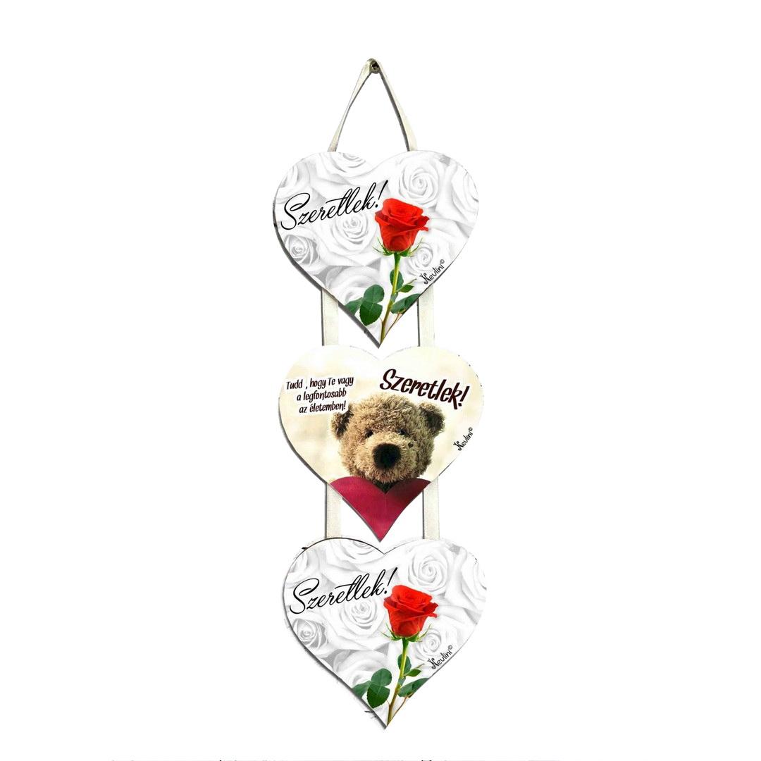 Méretei: 3 db 12,5x11,5 cm szív alakú táblából áll, teljes hossz 40 cm.